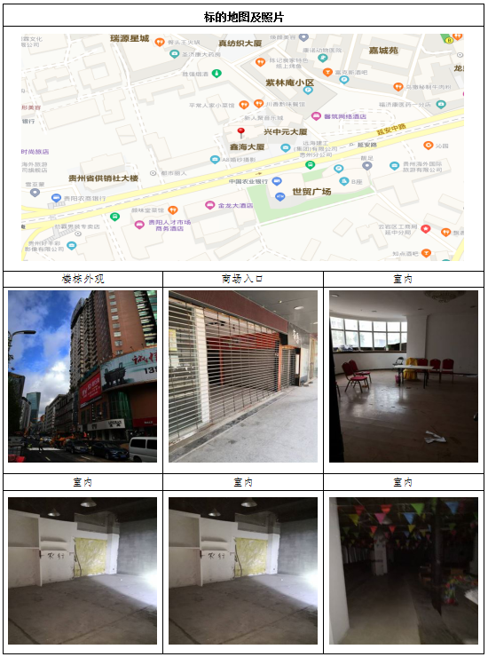 標的位于貴陽市云巖區(qū)延安中路81號鑫海大廈1層35、36、48、49號,2層16、17、50號,該標的總建筑面積為:159.73㎡,分攤土地使用權(quán)面積分別為0.76㎡、0.42㎡、0.96㎡、0.95㎡、0.48㎡、0.49㎡、1.85㎡;地類用途:商務(wù)金融用地,土地使用權(quán)類型為出讓,土地使用權(quán)終止日期為2047年12月31日,土地所有權(quán)為國家所有;樓層:總層數(shù)27層,標的位于樓宇總層數(shù)27層的第1、2層,層高:住宅商業(yè)層高3.5m,住宅層高2.8m;建筑結(jié)構(gòu):框架結(jié)構(gòu)。