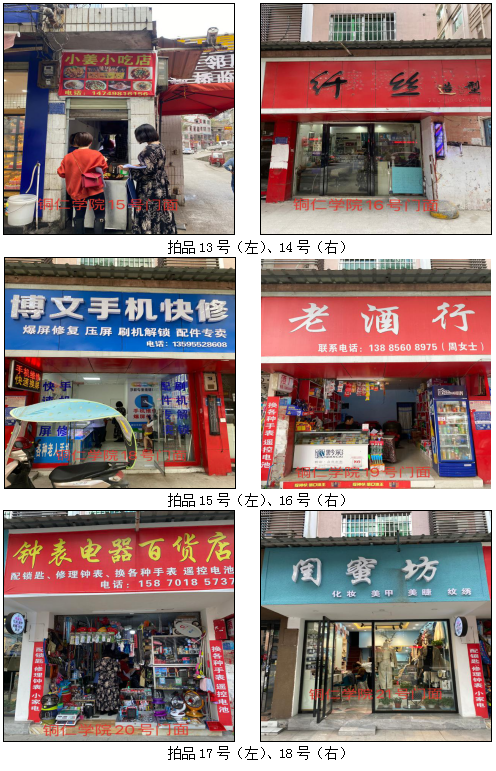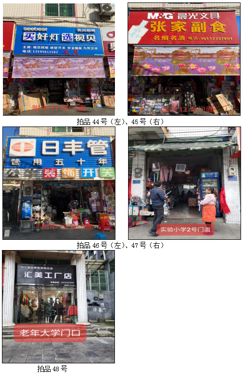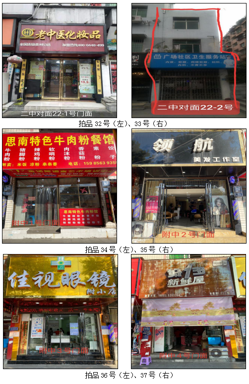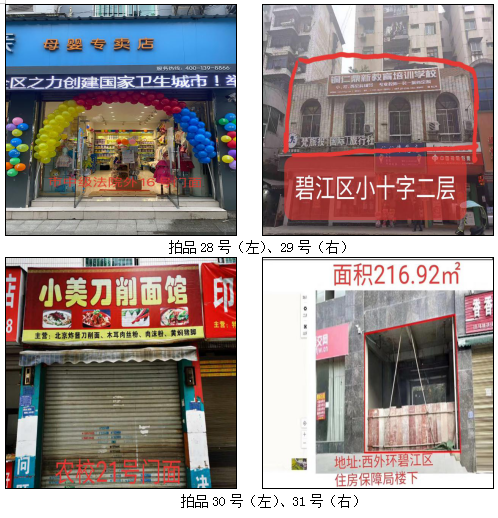 拍品34至46號(hào)標(biāo)的位于銅仁市清水大道實(shí)驗(yàn)小學(xué)東校區(qū),面積11.88——33.92㎡,租賃期3年(2021.04.01至2024.03.31止);