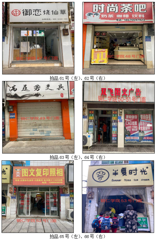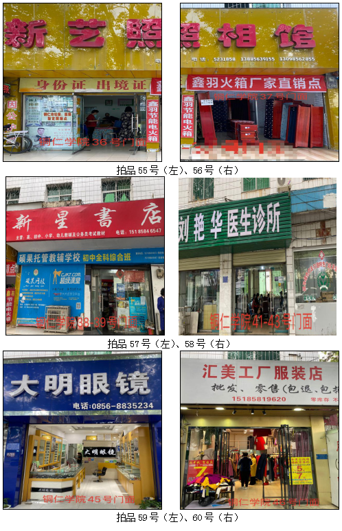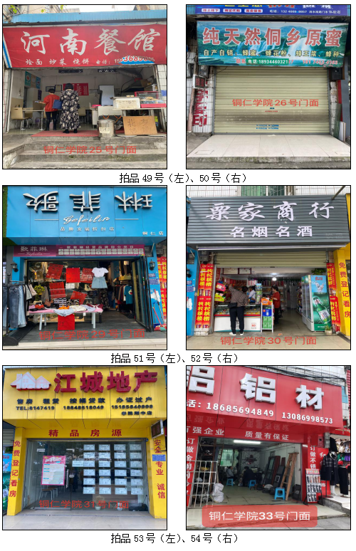 拍品58號(hào)標(biāo)的包含3個(gè)門面(銅仁學(xué)院41號(hào)、42號(hào)、43號(hào)門面)為整體拍租;