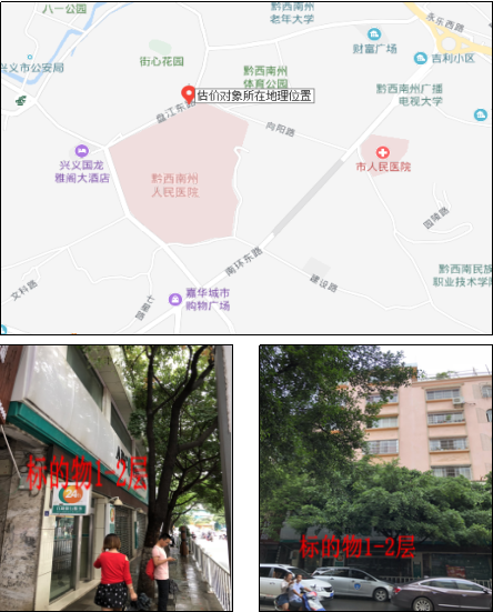 1、標(biāo)的物位于興義市盤江東路49號A幢第1號1-2層的綜合房地產(chǎn),標(biāo)的物建成于2005年,南面臨盤江東路,其余三面均臨多層建筑樓棟?;旌辖Y(jié)構(gòu),水電、生活燃?xì)?、消防等設(shè)施齊全。使用正常,維護(hù)狀況較好,普通裝修,地面鋪地磚,墻面及頂面刮瓷粉刷乳膠漆,鋁合金窗,防盜門、卷簾門、木門。