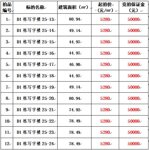 (建筑面積:44.97平方米-80.94平方米;可以單獨拍賣,也可以整體拍賣。)