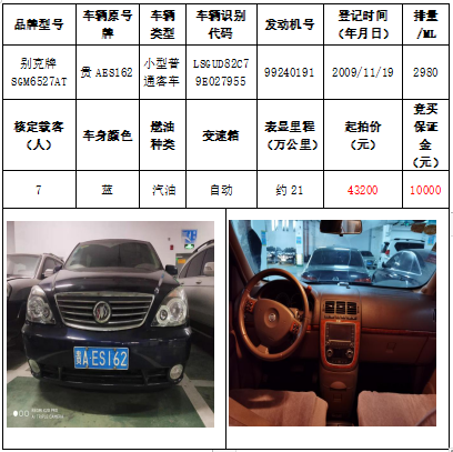 拍品編號2:別克牌SGM6527AT小型普通客車一輛