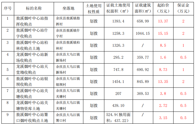 拍品編號(hào)1:遵義市煙草公司余慶縣分公司敖溪煙葉中心站指揮收購(gòu)點(diǎn)