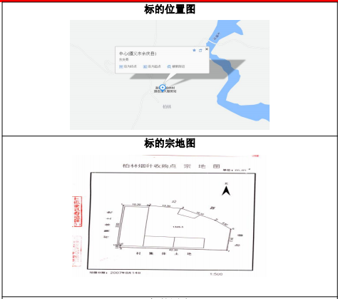 該標(biāo)的位于余慶縣敖溪鎮(zhèn)柏林村村委會(huì)旁,標(biāo)的上無(wú)建筑,該標(biāo)的以圍墻為界,標(biāo)的位置在村寨邊緣,證載土地面積:約1326.3㎡,土地使用權(quán)性質(zhì):劃拔,土地證載用途:煙葉收購(gòu),土地證號(hào):余國(guó)用(2007)第897號(hào)。