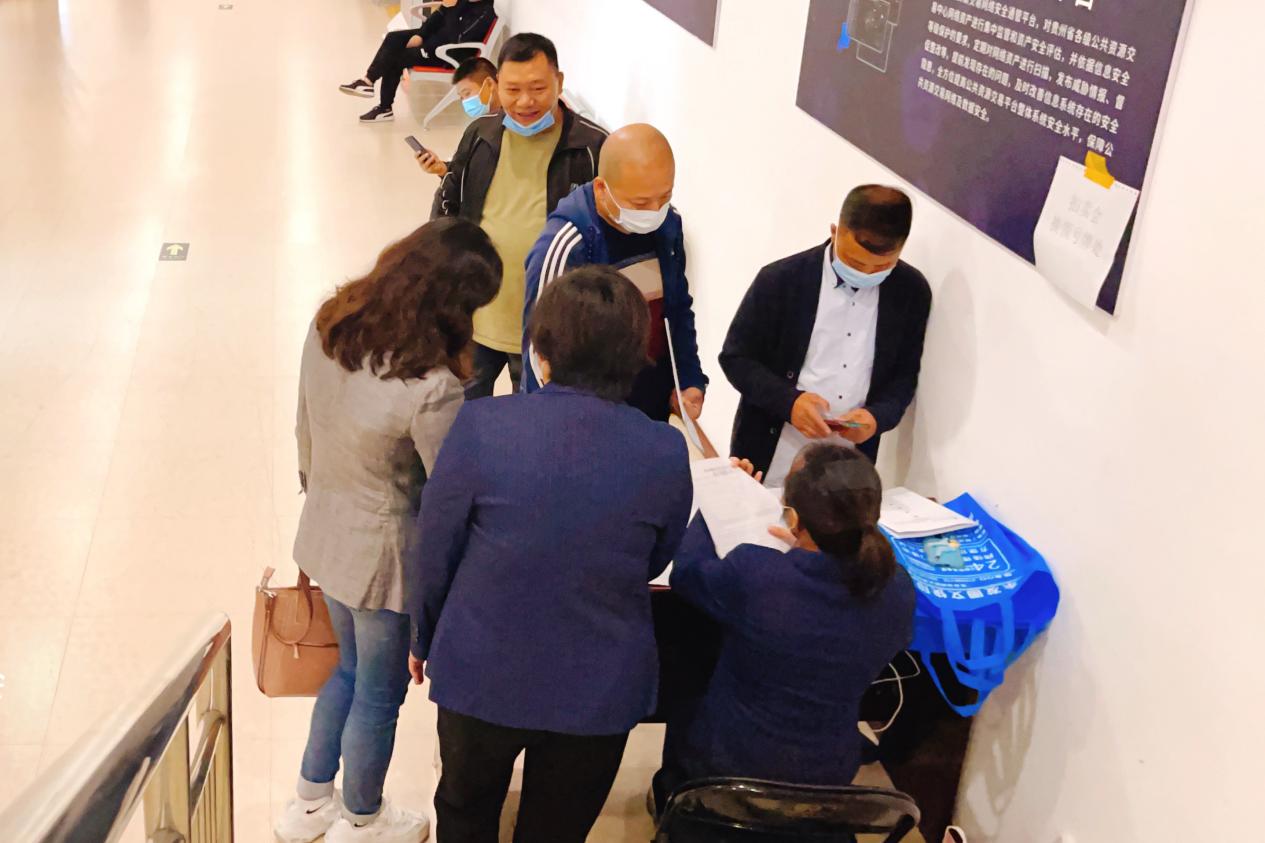10月13日,翔泓拍賣公司工作人員提前入場(chǎng)進(jìn)行會(huì)場(chǎng)布置,在座椅上張貼序號(hào),入場(chǎng)人員按照防疫預(yù)案要求查驗(yàn)“三碼”并依次登記、測(cè)量體溫,提醒競(jìng)買(mǎi)人佩戴口罩、對(duì)號(hào)并隔位入座。