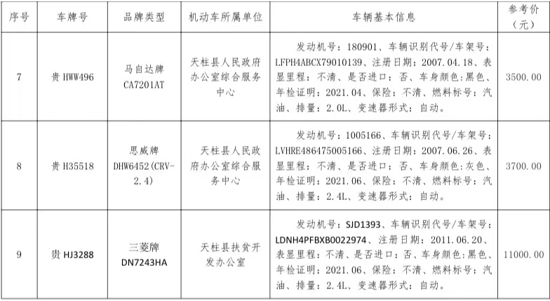 二、受天柱縣人民政府辦公室綜合服務(wù)中心委托代為拍賣以下標(biāo)的,意向客戶可自行到原單位展示點(diǎn)查勘。