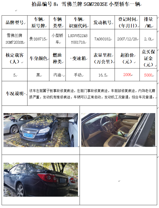 受委托,本公司定于2021年12月10日(星期五)下午14:00時,在銅仁市碧江區(qū)川硐教育園區(qū)誠信路銅仁市公共資源交易中心開標六室(拍賣大廳)公開拍賣以下車輛: