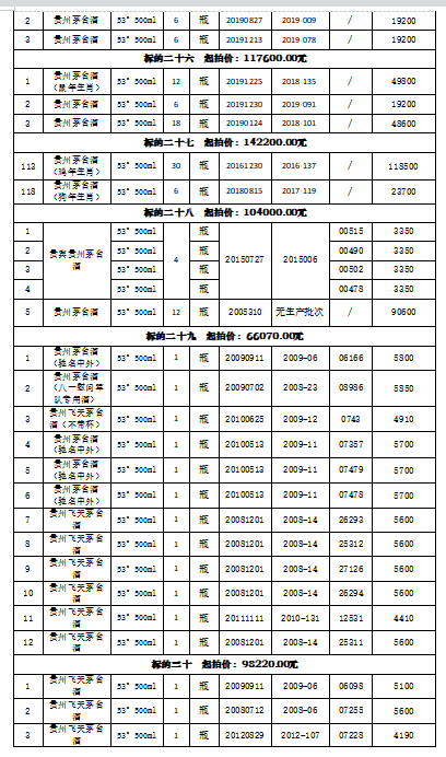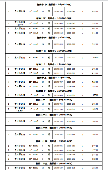 注:本場(chǎng)拍賣標(biāo)的經(jīng)過(guò)貴州茅臺(tái)酒股份有限公司鑒定為其公司生產(chǎn)。所有標(biāo)的按現(xiàn)狀進(jìn)行拍賣,競(jìng)買人自行判斷。報(bào)名后持報(bào)名成功短信進(jìn)入展示現(xiàn)場(chǎng)看樣,看樣時(shí)需提前預(yù)約,配合工作人員安排。競(jìng)價(jià)成功的買受人需公示期過(guò)后付款提貨。競(jìng)買人需到現(xiàn)場(chǎng)查驗(yàn),如未到現(xiàn)場(chǎng)實(shí)地看樣的競(jìng)買人,視為對(duì)本標(biāo)的實(shí)物現(xiàn)狀的確認(rèn),責(zé)任自負(fù)。成交后買受人需向拍賣人另行支付成交價(jià)2%的傭金。競(jìng)買人應(yīng)于2022年1月13日下午13:20時(shí)前入場(chǎng),遲到視為放棄此次競(jìng)拍。