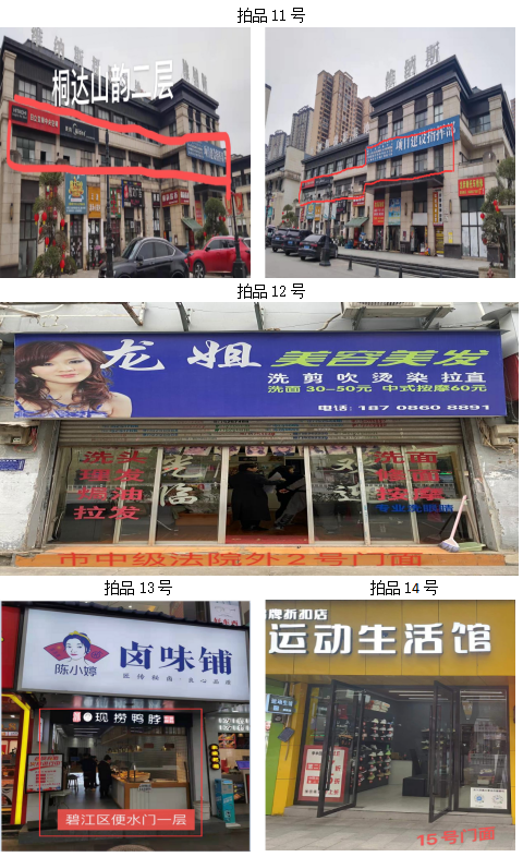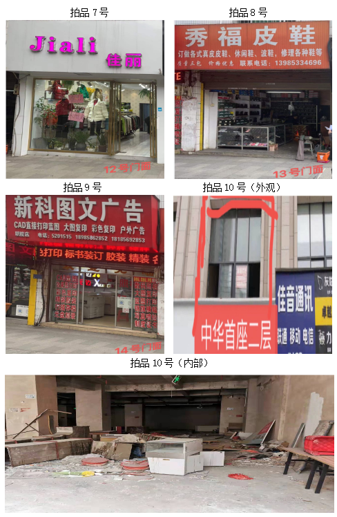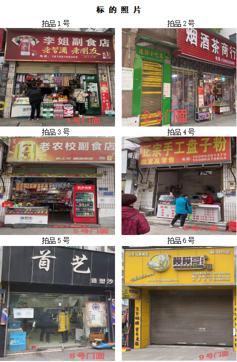 拍品1至9號標(biāo)的:位于清水大道銅仁農(nóng)校旁,地理位置優(yōu)越,屬于黃金大道。附近有大專、中學(xué)、小學(xué)、幼兒園等,教學(xué)配套齊全;擁有眾多小區(qū),人口流動能力強(qiáng),固定人口較多;周圍有超市、商場,人口流動性強(qiáng)。地理位置優(yōu)越,屬于臨街門店,升值空間較大;地區(qū)基礎(chǔ)設(shè)施完善,公共交通、公共停車設(shè)施的增加,使該地升值空間進(jìn)一步增大;建筑結(jié)構(gòu):磚混,面積:13.3㎡至29.4㎡不等(具體面積見上表),租賃期3年(具體日期見上表),保養(yǎng)情況:較好。