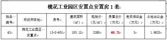 3、黃平縣槐花工業(yè)園區(qū)安置房1套,建筑面積:180.12㎡,起拍單價:2260元/㎡,起拍總價:40.71萬元;