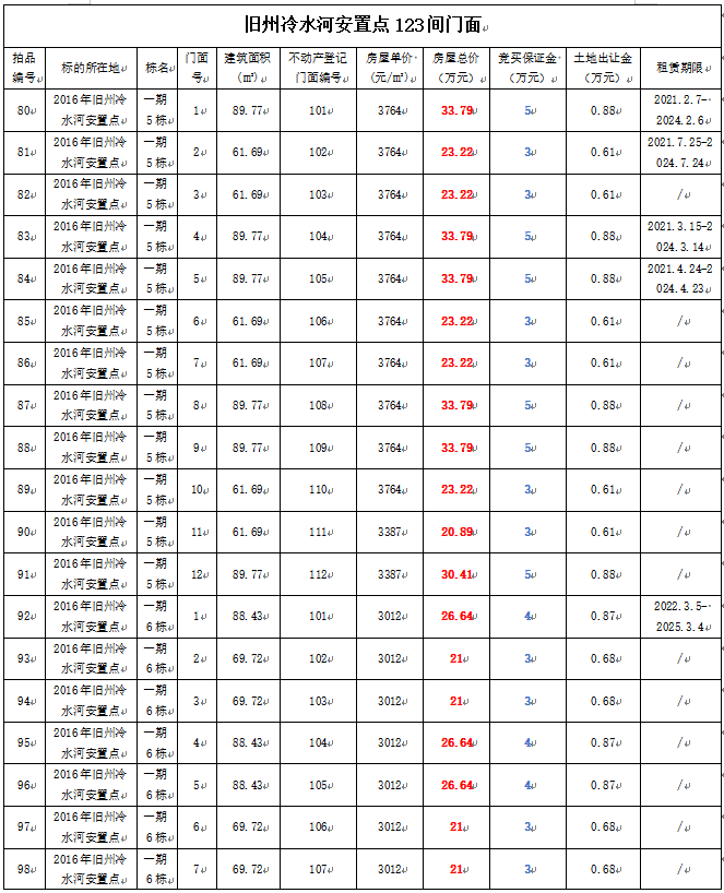 5、黃平縣舊州冷水河安置點門面123間,建筑面積:53.55—127.3㎡,起拍單價:3012—4713元/㎡,起拍總價:18.56—58.97萬元;