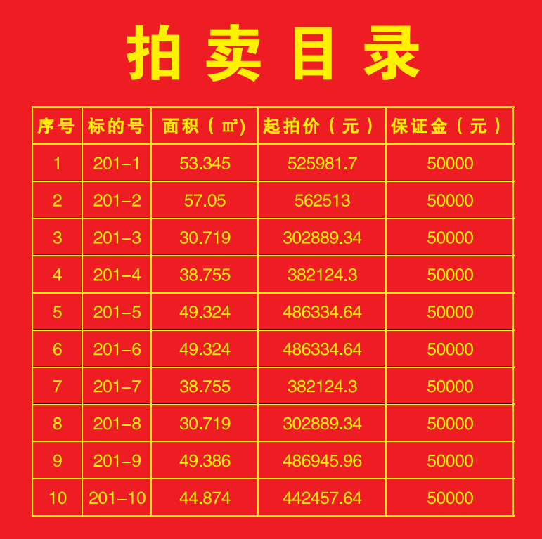 1、安順市西秀區(qū)建軍路4號順大廣源公寓2幢2-6單元2層201-1號至201-10號共計10個商業(yè)用房,位于地面1層(對面為安順市第二幼兒園),建筑面積30㎡—57㎡不等,起拍價:30.28萬元—52.59萬元不等,保證金:每個標的5萬元整(標的物詳情以拍賣資料為準)。